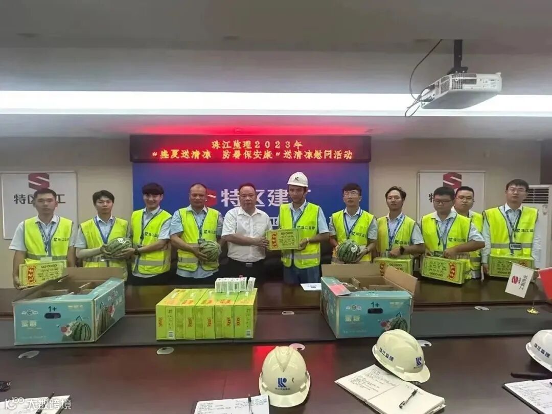 本次活动珠江监理工会共计送出饮料500余箱,西瓜100余箱,藿香正气水等防暑药品200多份,切实用务实举措发挥好职工“娘家人”作用,积极推进夏季职工生产生活保障工作落实,确保广大一线职工平安度夏,为企业保障安全生产有序、推动项目平稳运行当好坚强后盾。