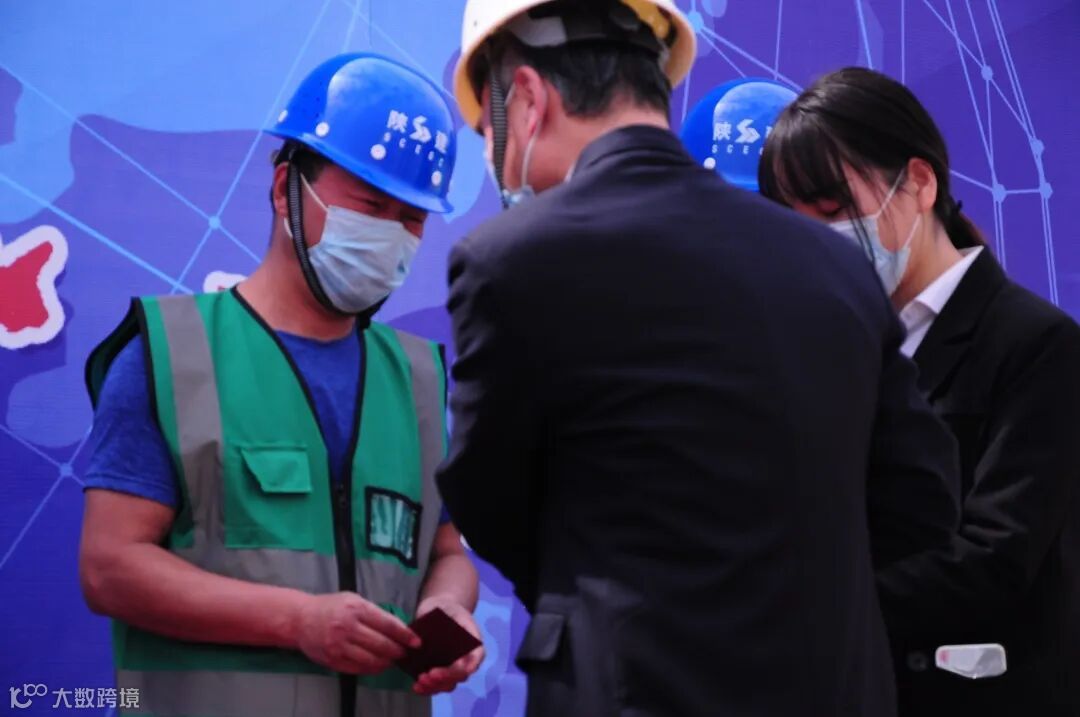 52名劳务人员自愿办理了工会会员入会手续,现场领取工会会员证。
