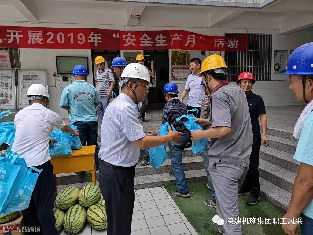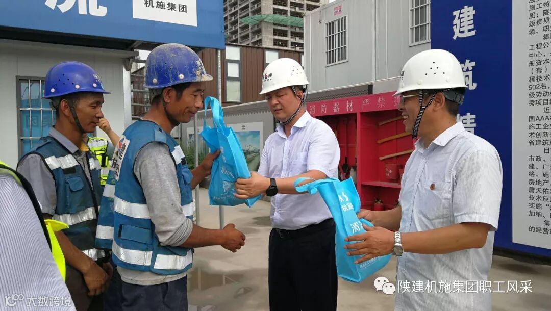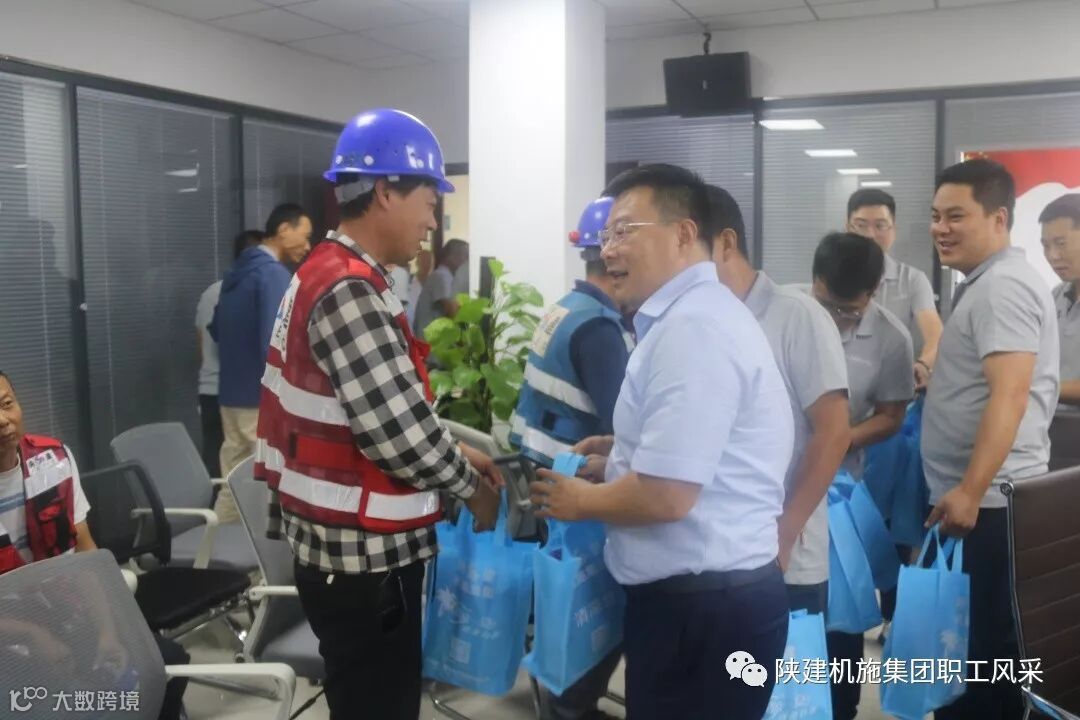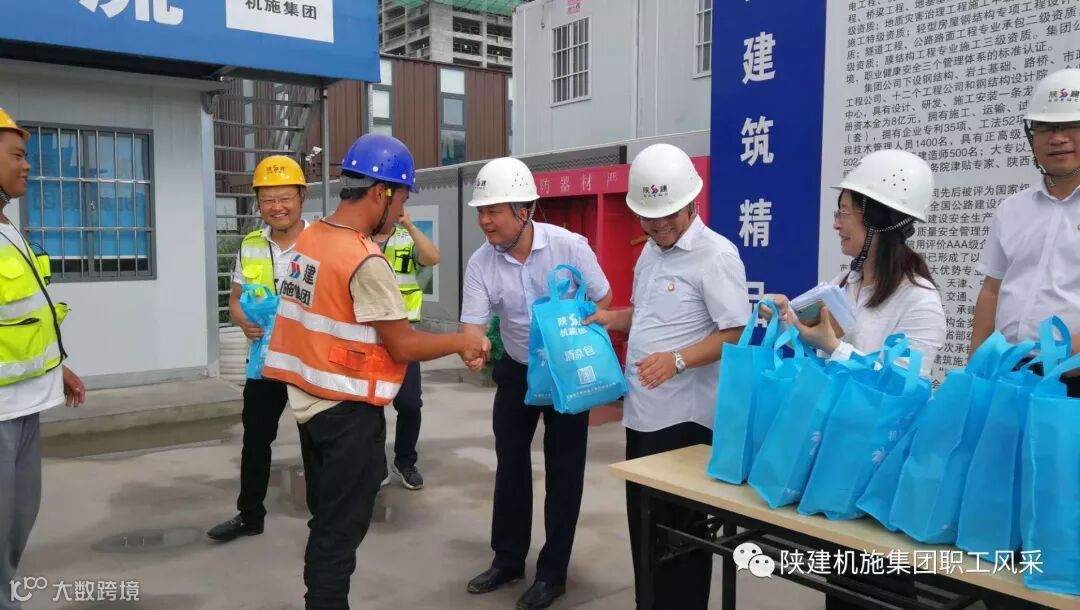 为确保一线职工平安渡夏,近日,陕建机施集团董事长王安华携领导班子全体成员分别陆续赶赴山东、福建、西宁、铜川、洛阳、延安、安康、泾阳、咸阳、杨凌、武功等共计18个工地,对奋战在施工一线的职工送去了水杯、茶叶、毛巾、冰糖等消暑慰问品,送去了集团公司的亲切问候。