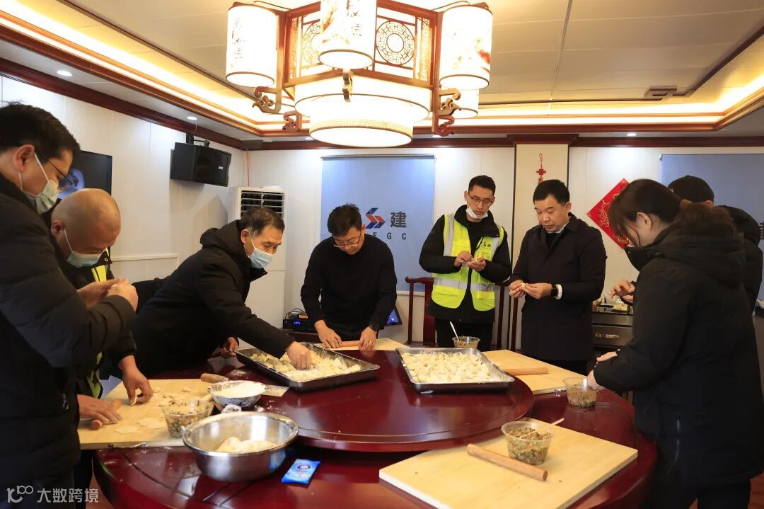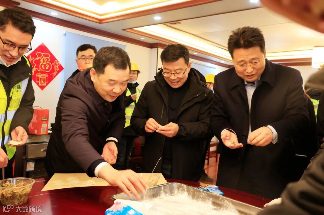 在食堂,王安华、徐永宏、王政和职工们一起动手包饺子,大家各显身手,交流着不同的饺子包法,在祥和、欢乐的氛围中,一个个饱含家的味道的饺子摆满了盘子,现场笑声阵阵,年味十足。
