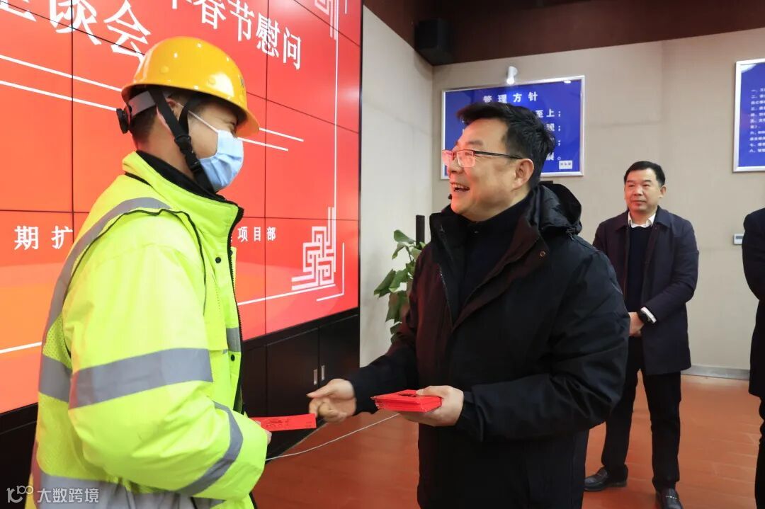 春节将至,年味渐浓。1月30日上午,集团党委书记、董事长王安华一行赴集团机场三期及地下工程项目慰问一线职工,为春节期间坚守在一线的广大职工们传达了集团党委、集团领导对项目职工的深切关怀,同时还送上了春节红包和慰问品等。集团党委委员、职工董事、工会主席徐永宏,集团副总经理、陕建钢构集团党委书记、董事长王政一同慰问。
