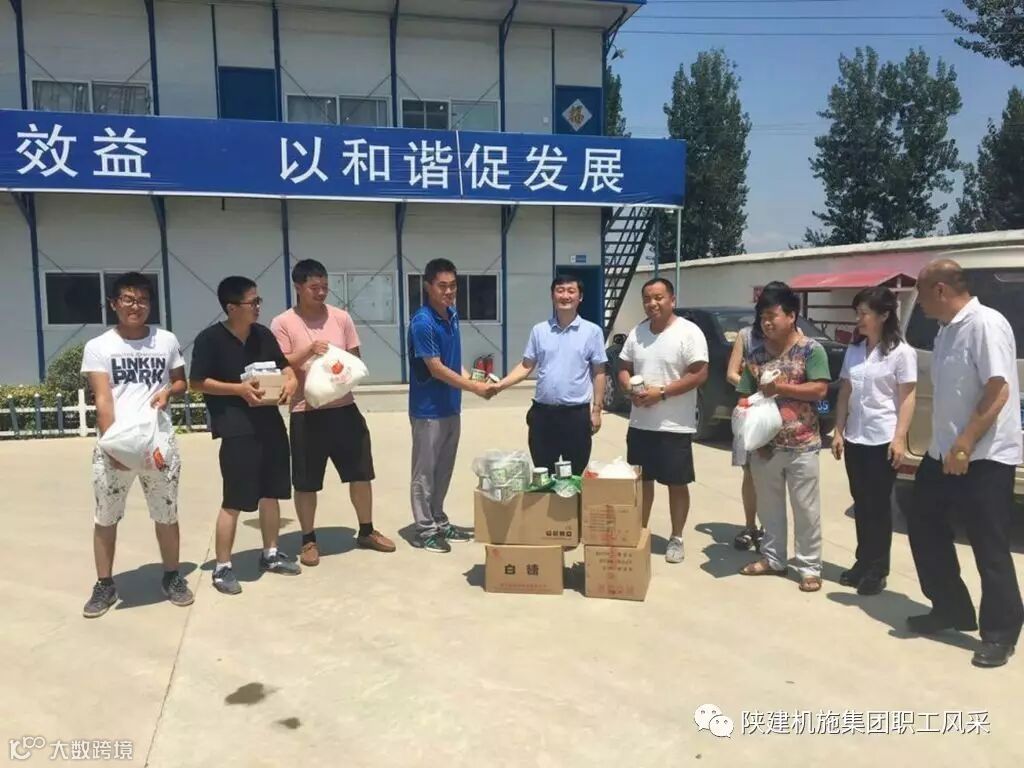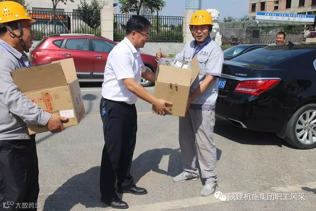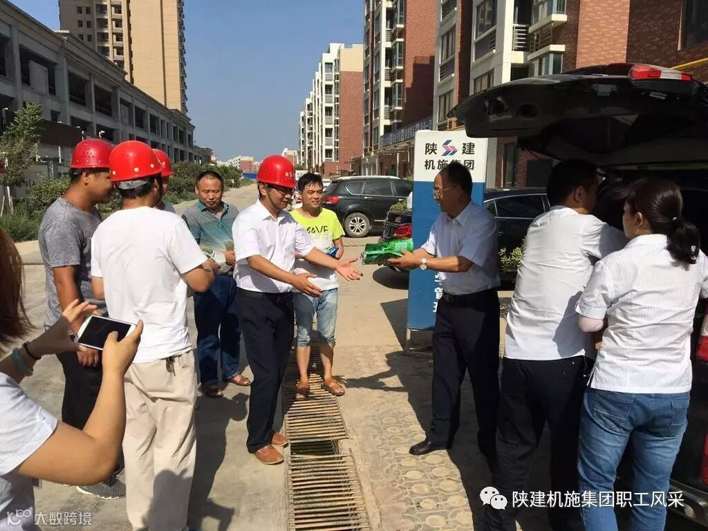 炎炎烈日,骄阳似火,为保障一线职工的身体健康,近日,陕建机施集团开展以“送清凉、送健康、送安全、送欢乐”为主要内容的“夏季送清凉”活动。机施集团领导班子全体成员分别陆续赶赴韩城、延安、蒲城、安康、宝鸡眉县、四川达州等共计19个工地,对为冒酷暑、顶烈日战斗在一线的施工人员送去了茶叶、绿豆、白糖、冰糖、藿香正气水等消暑慰问品。