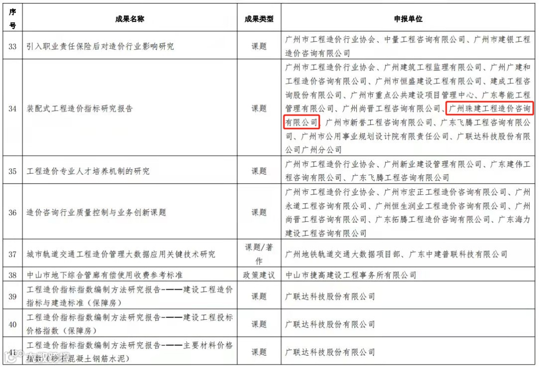 近日,珠建造价公司参与编写的装配式工程造价指标研究报告成果入选广东省工程造价改革研究成果收录名单。