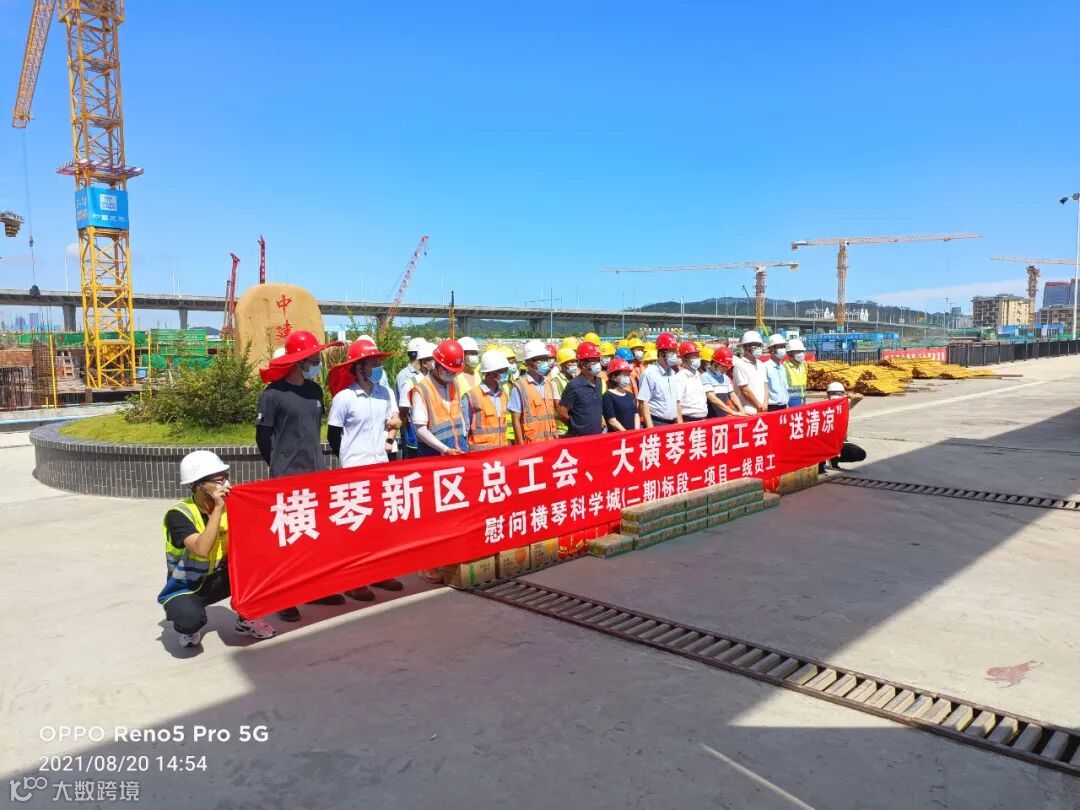 8月20日下午,珠海横琴新区总工会、大横琴集团工会代表到珠江监理横琴科学城(二期)项目开展“送清凉”慰问活动。