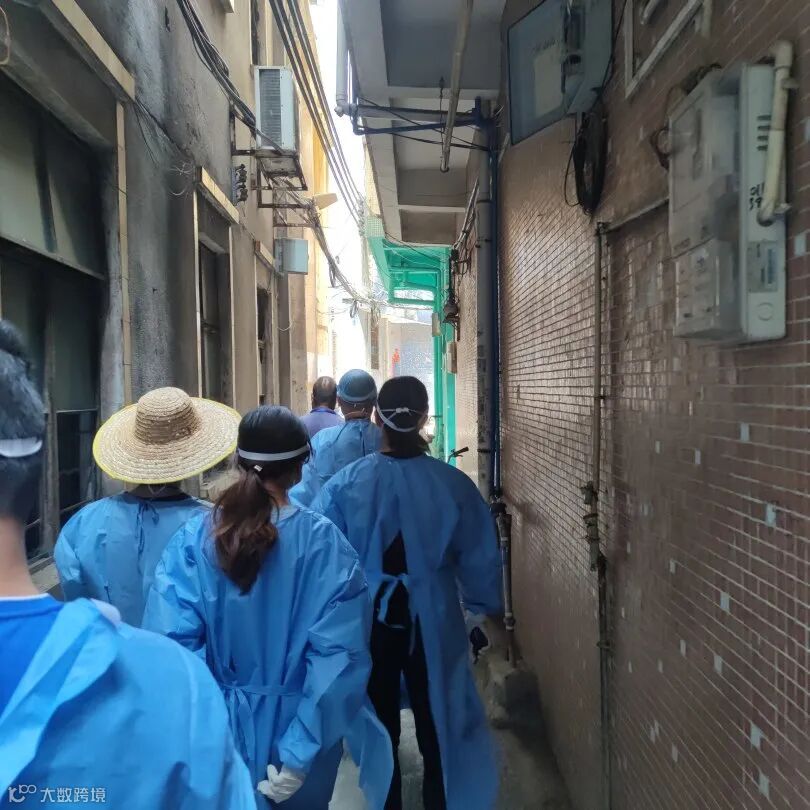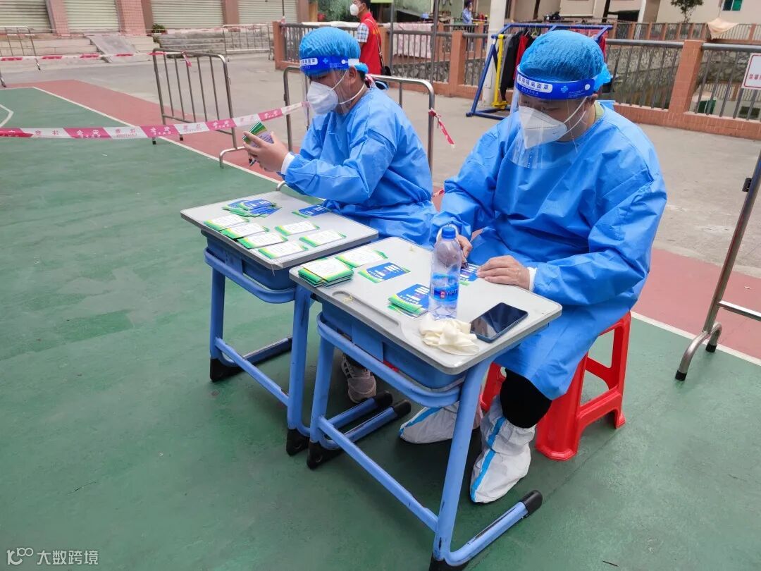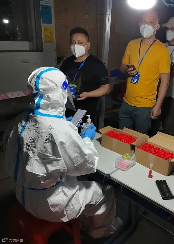 有的小组还在核酸检测点坚守,有的小组回到宿舍开始清点下午送达的物资,按组分好以便领取。