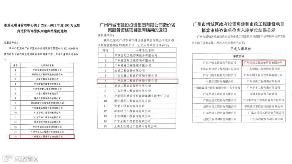 经建库单位投标评审,现场实地考察公司专业造价人员在职情况、软硬件配置状况及服务能力保障等各项因素后,珠建造价公司首次成功进入广州市重点公共建设项目管理中心、广州城市建设投资集团有限公司及广州市增城区住房和城乡建设局三个造价咨询服务库。