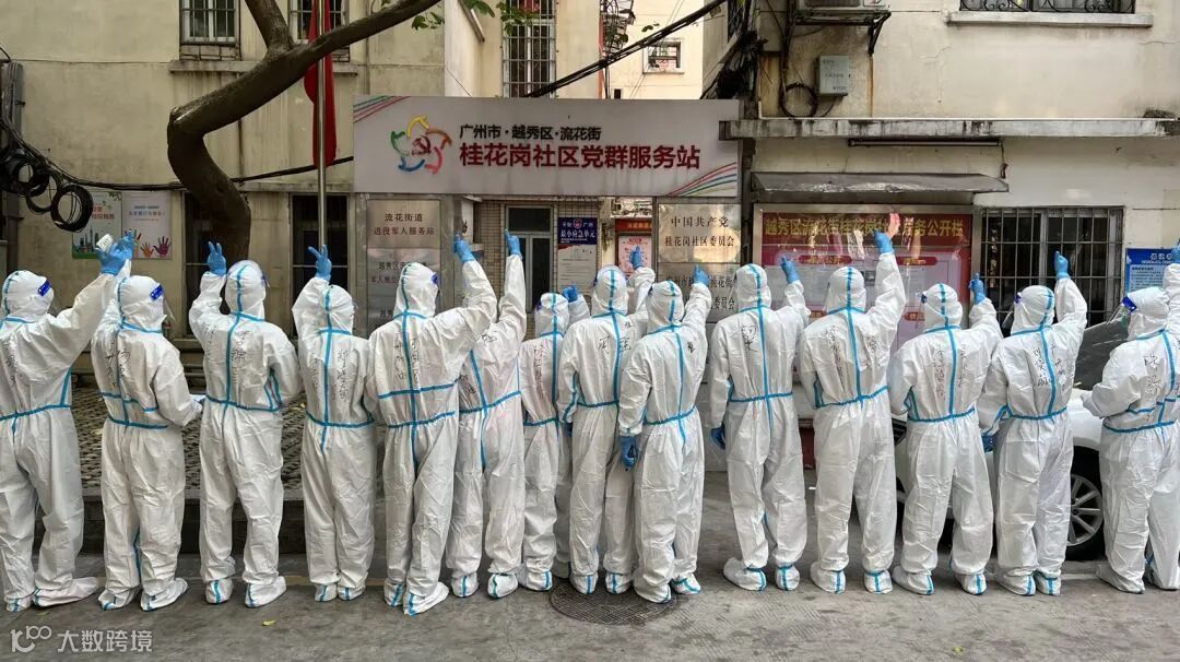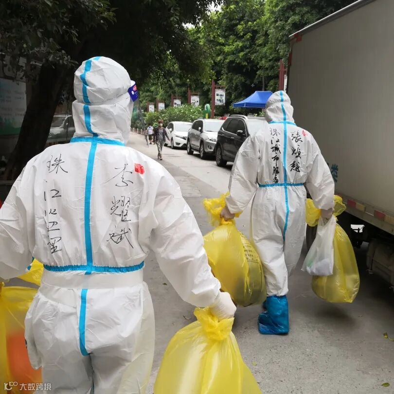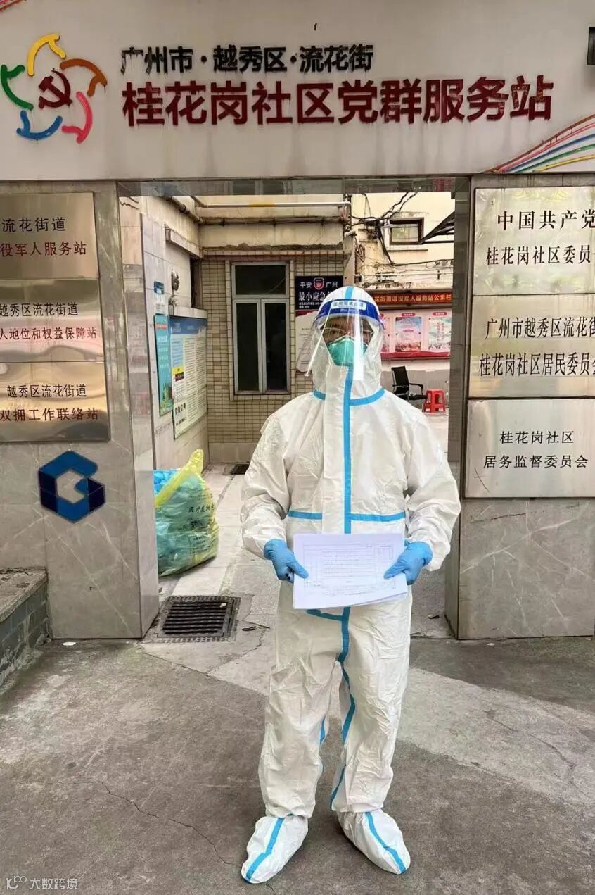 四月的广州,天气多变,烈阳和冷雨轮番上阵,支援同志们身穿密不透风的防护服,在楼道里上下奔波,为隔离在家的居民们配送生活保障物资、登记各项信息……他们的身影成为了住户们心中的“定海神针”。