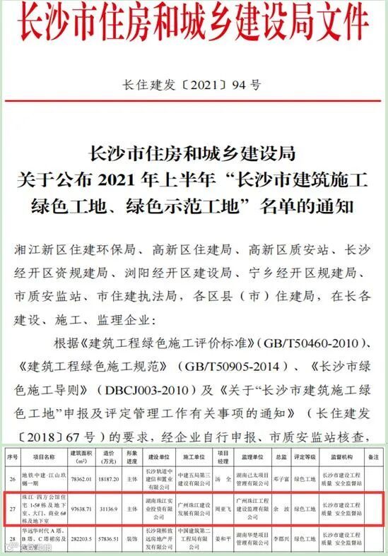 近日,珠江监理长沙珠江四方公馆项目荣获湖南省2021年上半年度“长沙市建筑施工绿色工地”荣誉称号。珠江监理在此次评比活动中脱颖而出,展现了自身过硬的专业能力和服务水准,得到了湖南省业界对项目监理工作的肯定,为珠江监理在湖南区域树立了良好的企业形象。