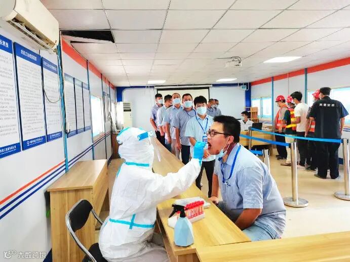 核酸检测现场提前进行消杀工作,并安排专人维持现场秩序,核酸检测人员均持身份证及行程码,保持安全距离,现场秩序井然。紧接着,项目开展“防风防台防汛”及“防疫”的应急演练。现场参与人员在交底的情况下,根据演练方案步骤要求,在主持人的指挥下,各位演练人员密切配合,演练活动有条不紊地进行。