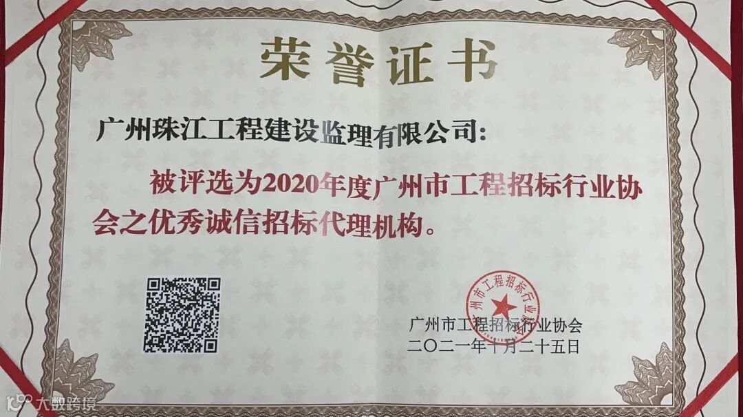 10月29日下午,广州市工程招标行业协会第二届第四次会员大会在广州召开,珠江监理被评选为2020年度广州市优秀诚信招标代理机构。
