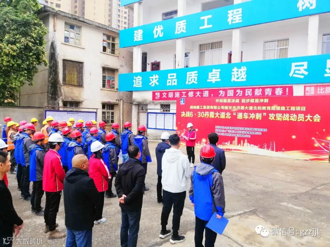 为践行“三高四新”战略,加快推进项目道路工程建设并确保按时建成通车,3月9日上午,珠江监理韶关市丹霞大道北和教育路道路工程项目召开决战6·30丹霞大道北“通车冲刺”攻坚战动员大会,韶关市代建局副局长邓永坚、监理单位代表和项目全体员工及作业班组人员100余人参加会议。