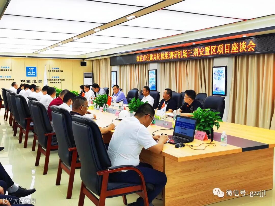 在调研会上,张新斌总经理助理向黄昌军组长一行介绍了珠江监理在本项目的党风廉政建设、工程现场管控等工作的开展情况。黄昌军组长在会上充分肯定项目建设取得的工作成效。他指出,机场三期安置区项目的建设使命光荣、责任重大,下一步要继续全力协调各方,高质量推进安置区项目建设工作。他强调,项目投资量大,廉政风险较高。因此,一是要抓好党的建设,坚持党建引领,提高政治站位,全力贯彻落实市委、市政府各项决策部署。二是要抓好廉洁建设,建设工程领域资金密集,要提高风险意识,严控廉洁风险。三是要勇于担当,主动作为,高质量高标准完成项目建设任务。