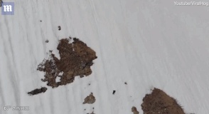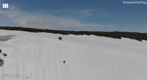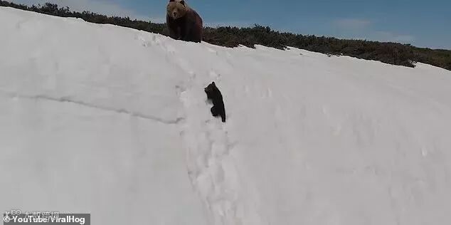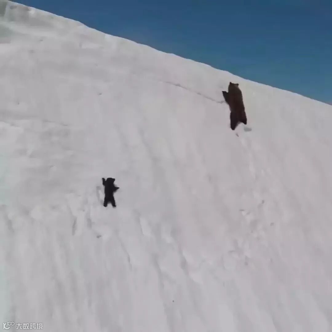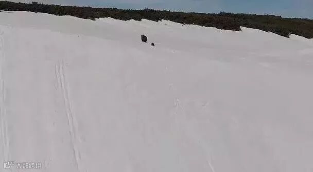 视频拍摄地是俄罗斯的一个雪山,当时一个无人机远远地拍摄到一只熊妈妈和一只熊宝宝打算一起爬上山岭,