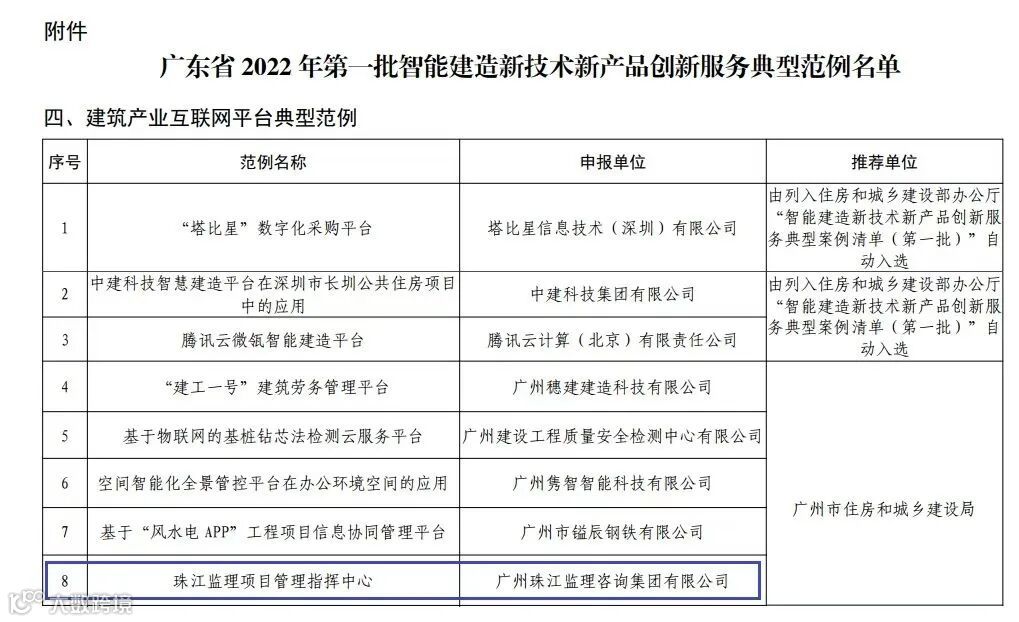 1月17日,珠江监理暨2018年获得高新技术企业认定后,再次顺利通过认定备案。9月,珠江监理项目管理指挥中心入选“广东省2022年首批智能建造新技术新产品创新服务范例”。近年来,珠江监理坚持科技赋能企业发展,培养了一批技术过硬的研发团队,多项研发成果应用到具体的项目管理,受到了业主的肯定,为企业的经营活动以及智能化转型升级起到了良好的推动作用。