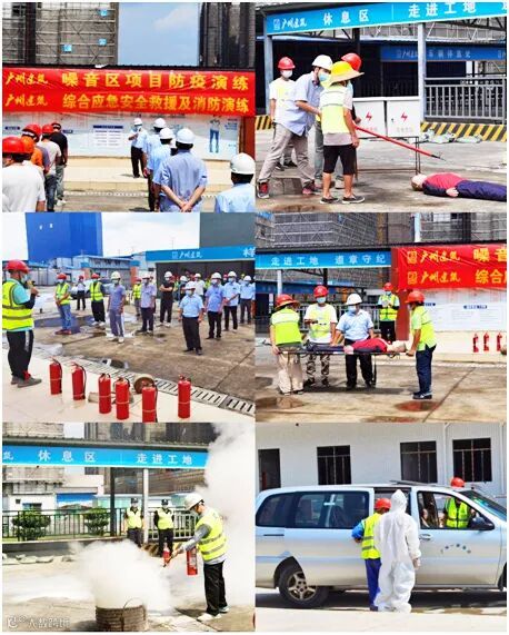 6月18日,珠江监理白云国际机场噪音安置区项目组织安全生产月防疫应急演练与综合救援及消防演练。