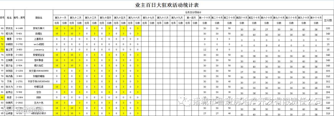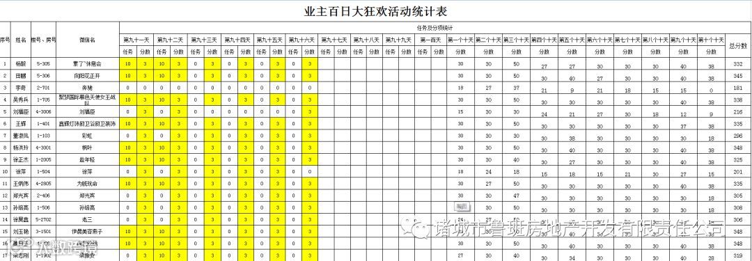 ③.活动结束后,依据业主得分,分高者胜。