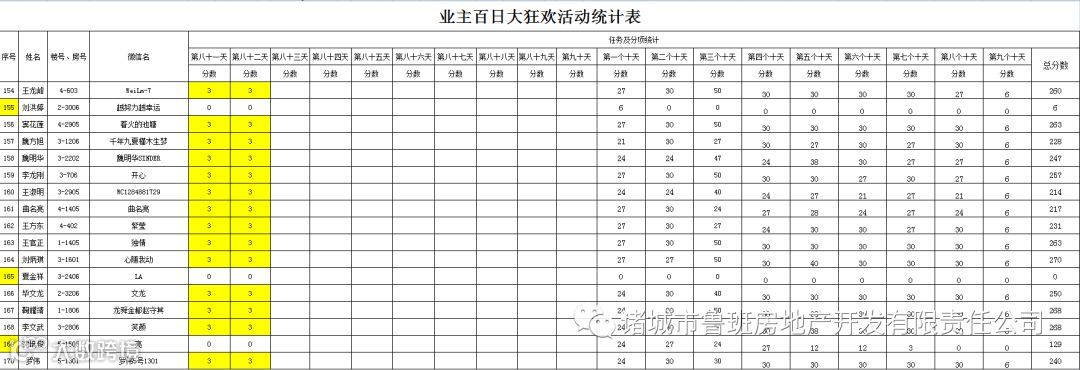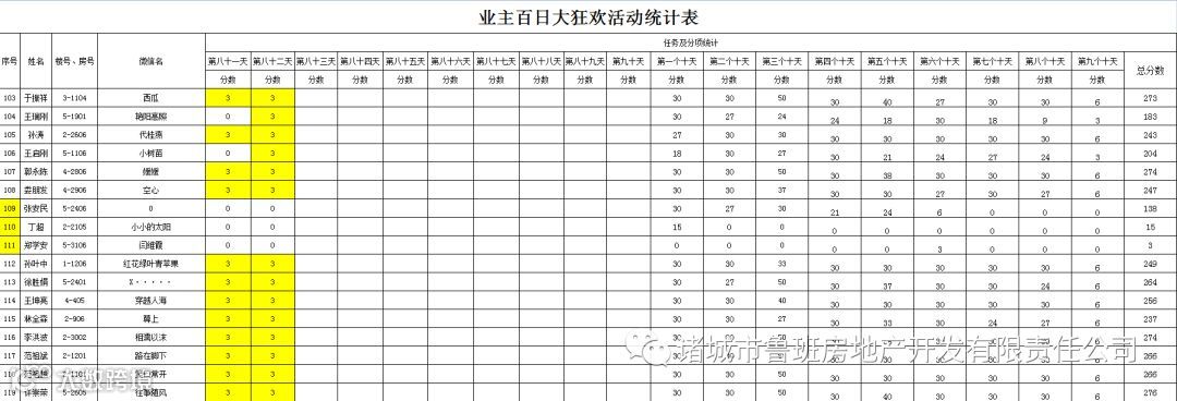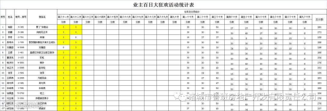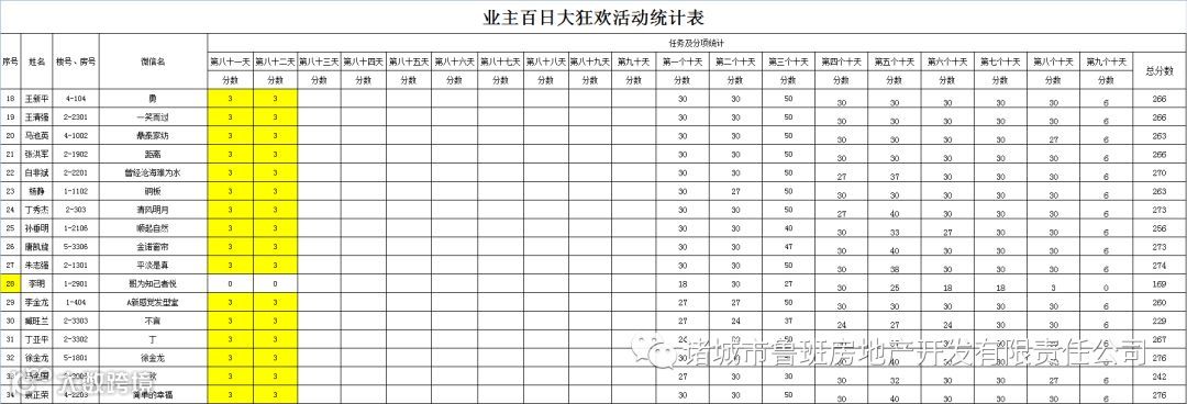 ③.活动结束后,依据业主得分,分高者胜。