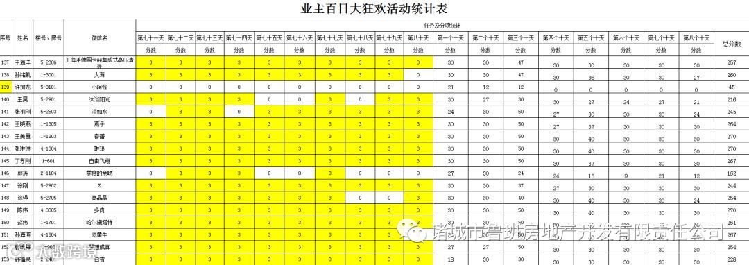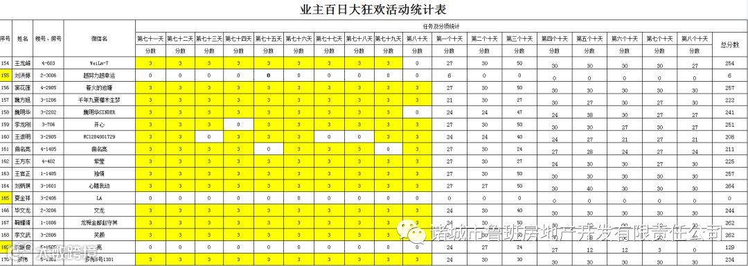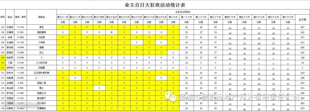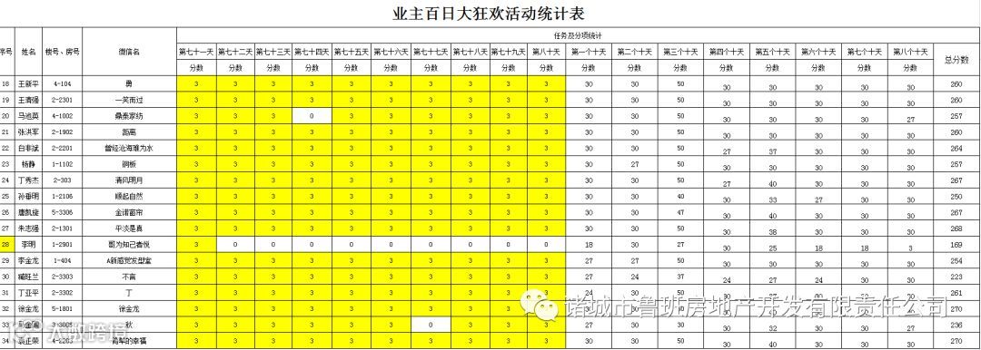 ③.活动结束后,依据业主得分,分高者胜。