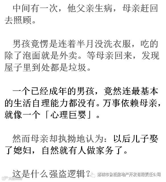 或许她永远不明白,一个连独立生存能力都没有的儿子,又何谈经营一个幸福的家庭?