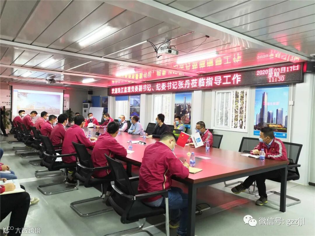 2020年3月17日上午,珠江监理党委副书记、纪委书记张丹一行调研华为G区项目,检查疫情防控及复工复产工作情况,并与华为业主进行了深入交流。三公司温景贤经理、纪检监察部副主任崔承辰等陪同调研。