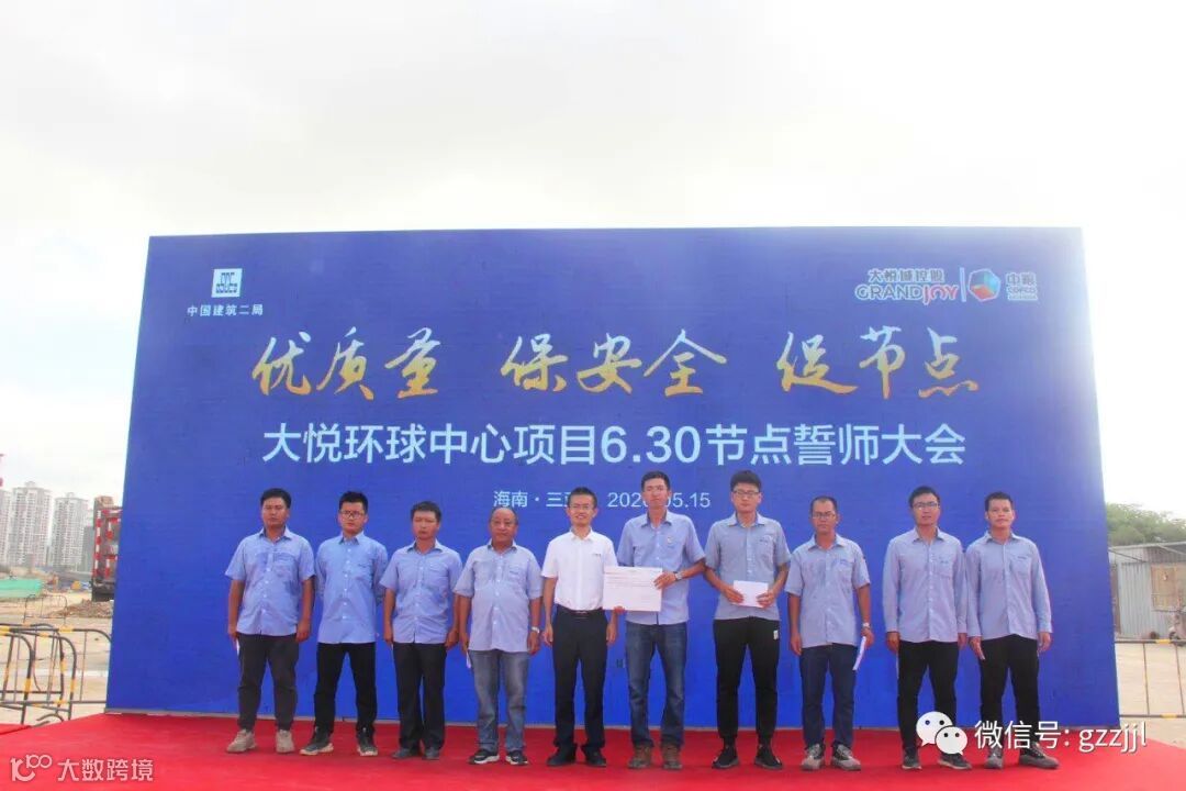 5月15日上午,珠江监理三亚大悦环球中心项目举行“优质量、保安全、促节点” 6.30节点誓师大会。大悦城控股海南公司总经理曾和平、珠江监理一公司副经理陈文栋、中建二局海南公司总经理押晓飞等参加誓师大会。