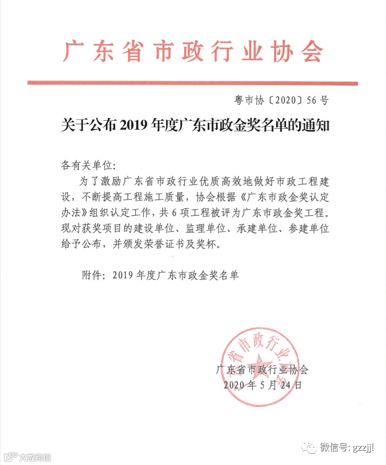 该项目从获评“2019年度广东省市政优良样板工程”奖项的63项工程中脱颖而出,成为全省6个获奖工程之一。同时该项目已获得省市行业5个工程奖项,表明此工程的工程质量已达到广东省内领先水平,体现了业界对珠江监理工程质量管理水平的高度认可。珠江监理将以此次获奖为契机,奋发作为,再接再厉,争创高品质工程,不断缔造监理品牌,树立行业标杆。