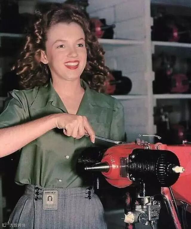 18岁的诺玛·简·莫泰森在加州工厂工作,