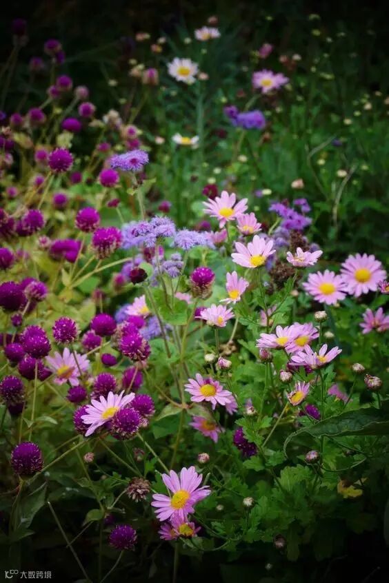 黄色的花淡雅,白色的花高洁,紫红色的花热烈而深沉,泼泼洒洒,秋风中正开得烂漫。
