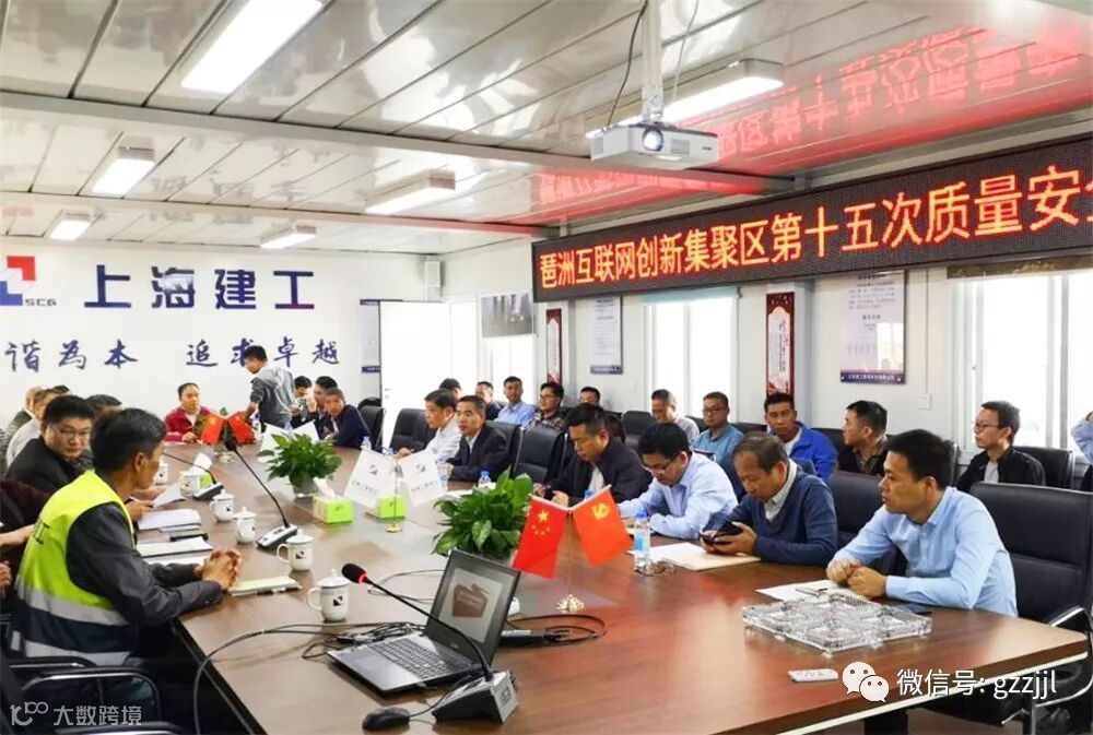 2019年12月25日下午,为全面落实建设工程质量安全各方主体责任,有效预防和遏制事故的发生,“琶洲互联网创新集聚区”第十五次质量安全工作会议在珠江监理广州国际航运大厦项目举行,“琶洲互联网创新集聚区”21个建设项目、共63名参建人员参加了会议,会议由海珠区建设工程质量安全监督站站长颜跃进主持。