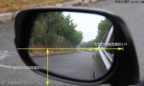 新手必须学会调整后视镜,有10%的交通事故与后视镜盲区有关!左右后视镜调整标准:远处地平线位于镜子中间,车身占镜子 1/4。 车内后视镜调整标准:远处地平线位于镜子中间,能看到自己的右耳。
