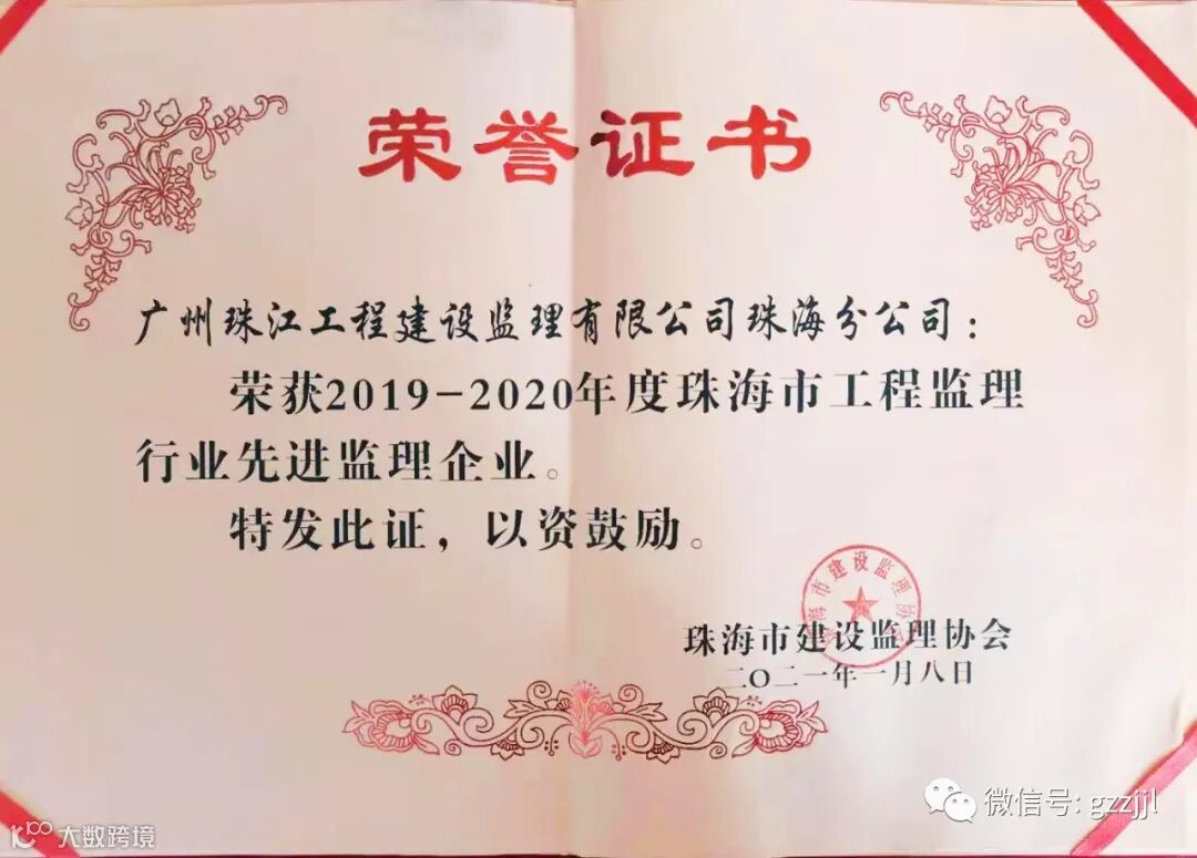 珠江监理珠海分公司是第三次获此项殊荣,在珠海地区215家监理企业中,珠江监理作为其中22家获先进监理单位之一,这充分体现了珠江监理珠海分公司多年来在珠海地区工作得到了所在地的肯定。
