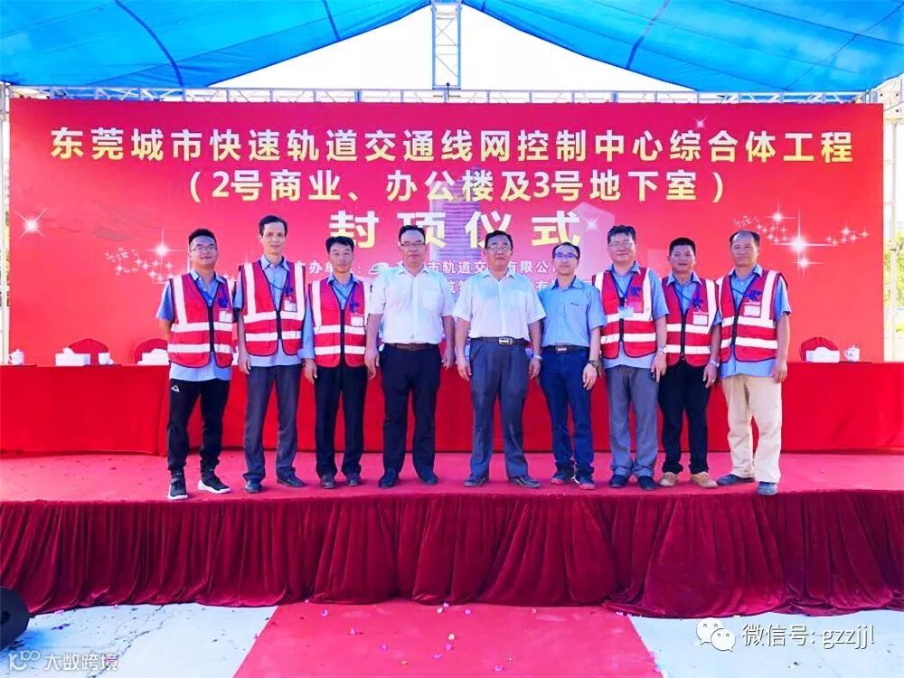6月29日,珠江监理东莞市轨道交通大厦项目举行封顶仪式,东莞市政府副秘书长卢汉彪、国资委党委副书记游锦辉、发改局副局长肖必良、轨道交通局局长李天海、交通投资集团总经理张庆文、东莞市轨道交通公司党委副书记陈文胜以及珠江监理党委书记、董事长、总经理徐柱等领导参加了封顶仪式。
