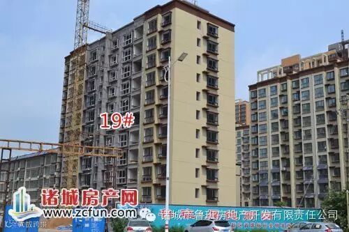 18#楼正面的外立面也已经施工完毕,正在安装窗户。19#楼正面外立面已经进入施工尾声