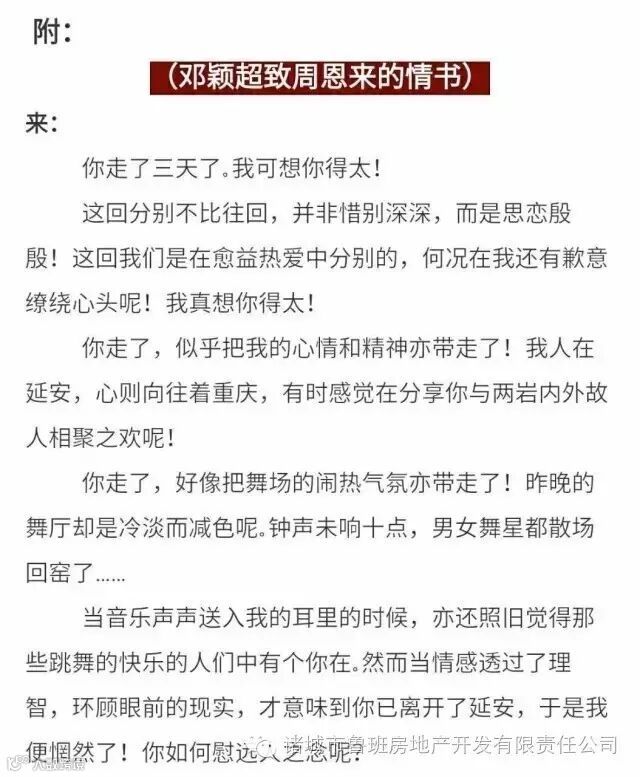 爱一个人,必得先了解一个人。尽管邓颖超的小心思没有得到周恩来的迎合,但她了解也能理解周恩来,心里失落了一小会,便开始张罗起自己的工作来。