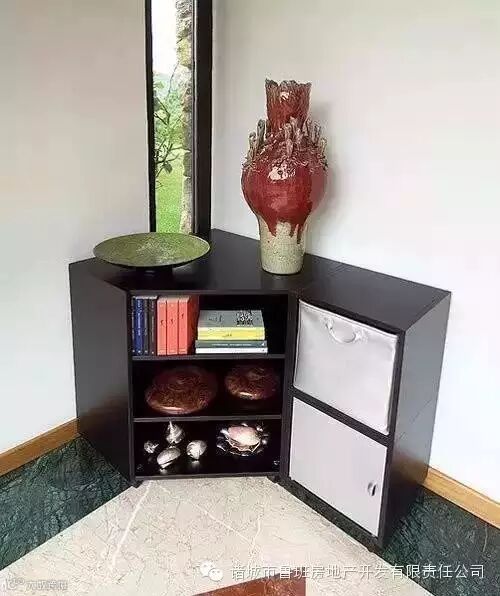 8、小资感十足的转角飘台柜,结合了抽屉柜,让小角落变得更有意义。