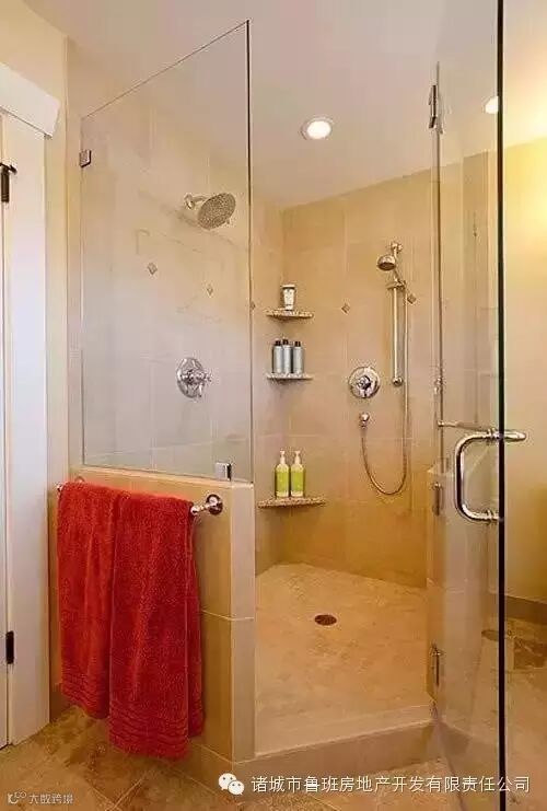 10、墙角位放置一个小隔层,能摆放一些浴室小物品,洗护用品触手可及。