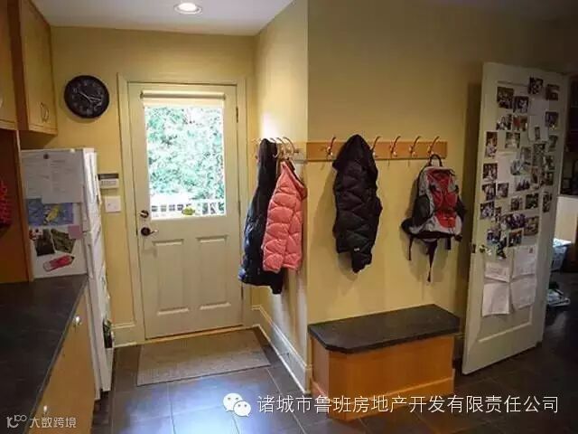 9、玄关面积太小,不如考虑在墙角转弯处放几个挂钩架,能够挂上一些衣服和小杂物。