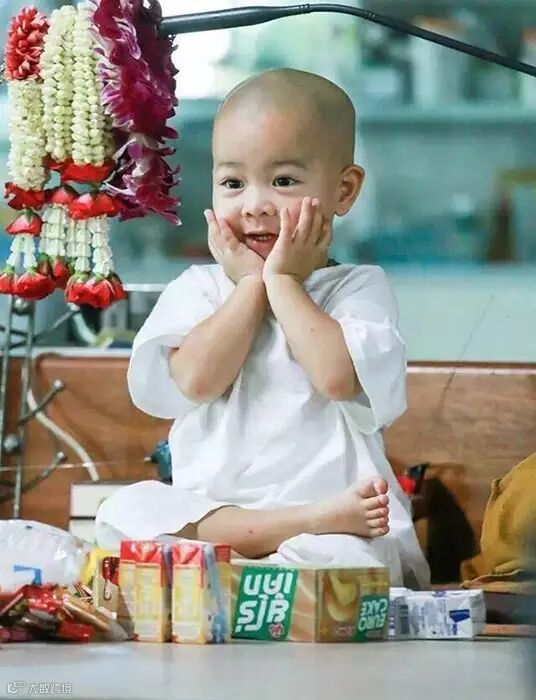 3/20孩子的可爱天真,让成为小和尚的nongkorn第一时间萌化了所有人,或许这也是佛度世人的一种修行吧!正如那句:真心无始,自性清静。(图片来源:泰国星暹日报)