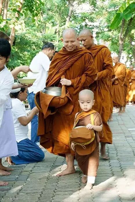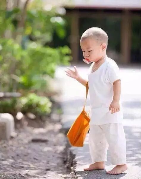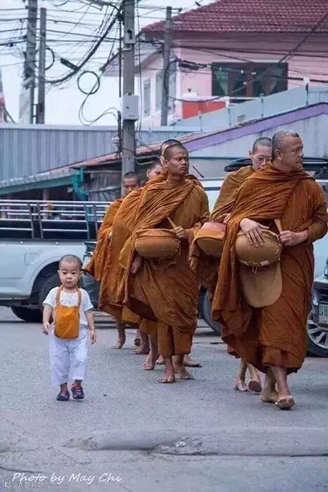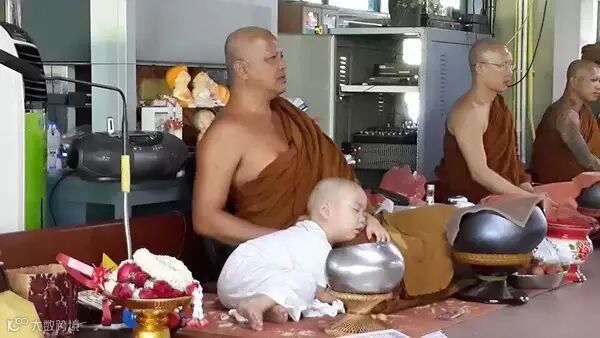 2/20他叫nongkorn,今年两岁半,三个月大的时候,就被父母送到泰国暖武里府寺庙Wat Pa Maneekan学习佛法,跟着寺庙里的师父们一起起居,化缘、打坐、听经、劳作。(图片来源:泰国星暹日报)