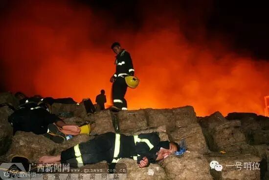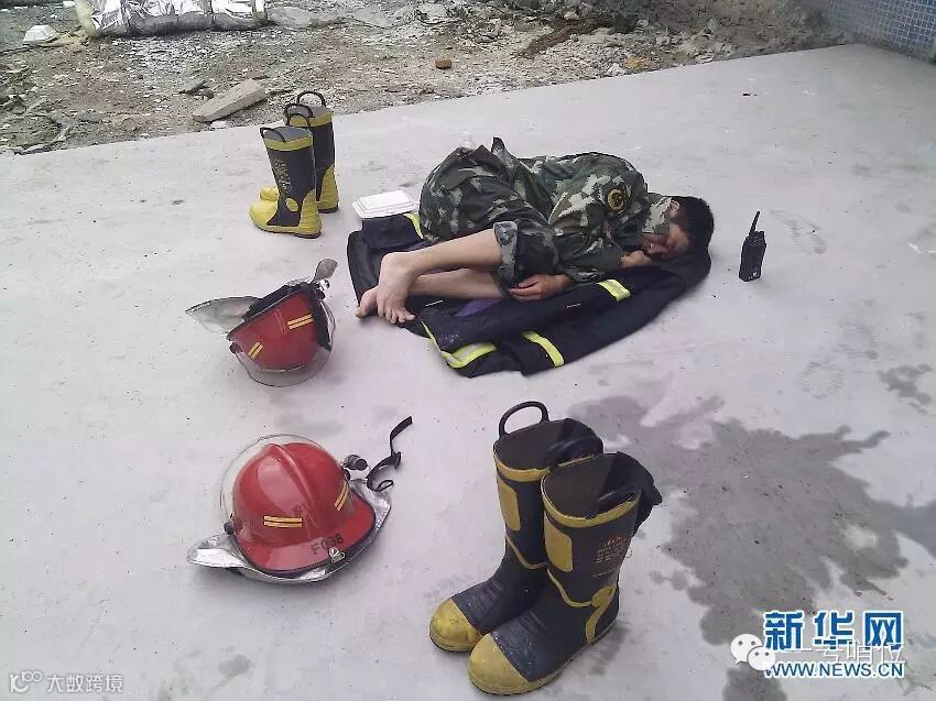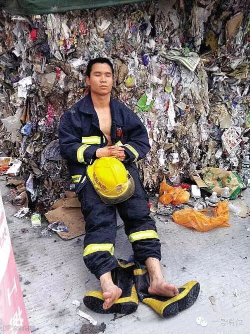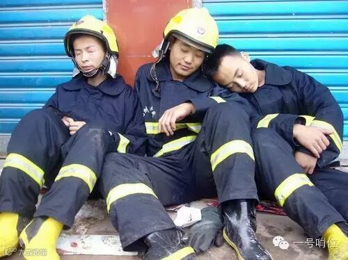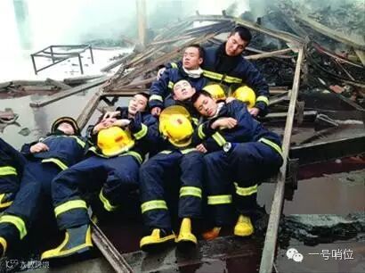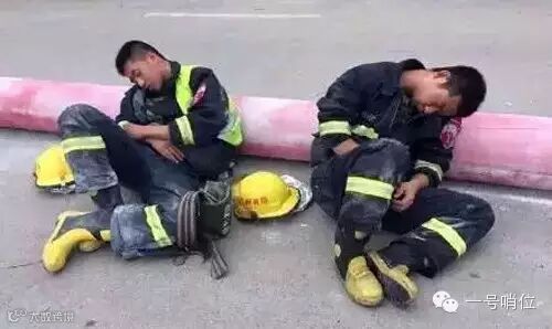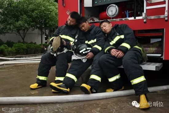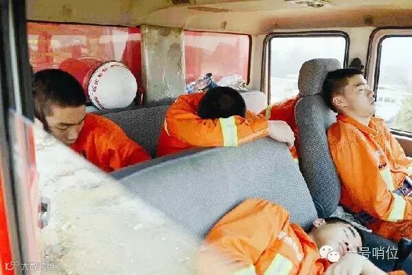 火灭了,就让他躺在消防车顶上睡一会儿吧