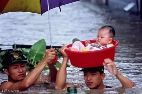 2武警战士用身体给与洪水中的宝宝一个“安全岛”
