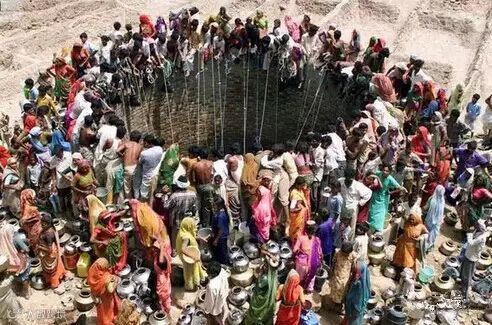 5印度居民顶着44℃的高温在这里排队打水
