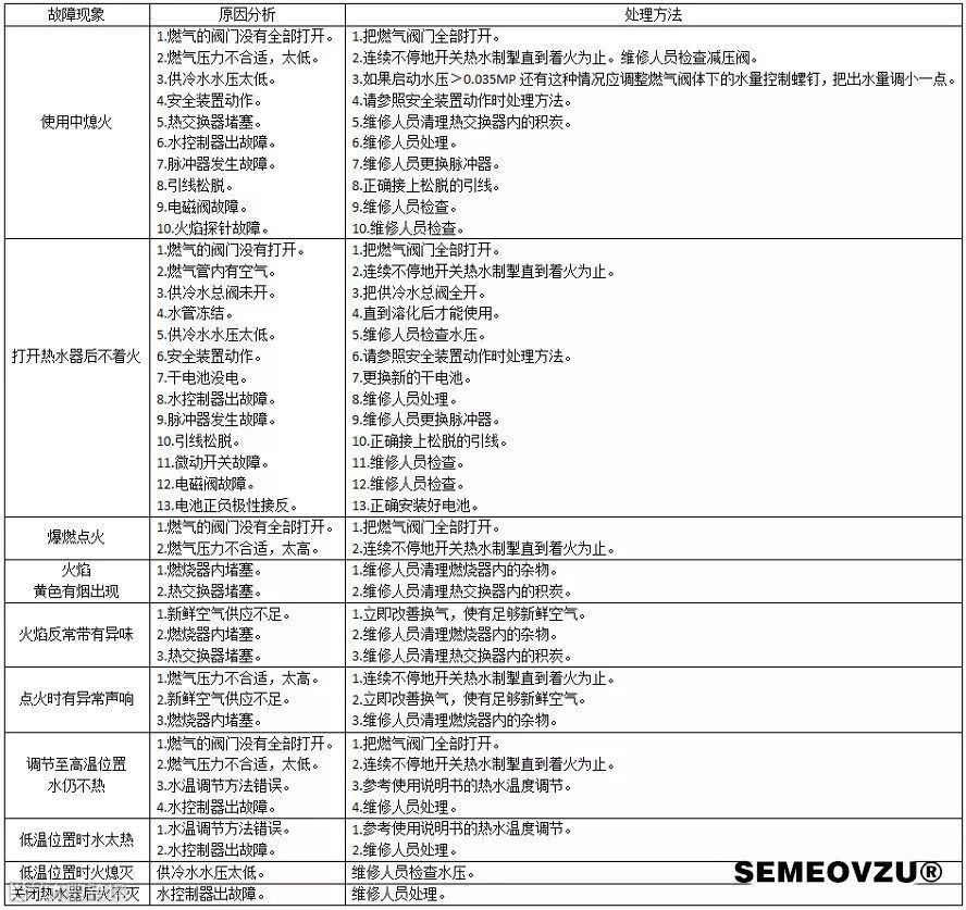 燃气热水器的故障与维修: