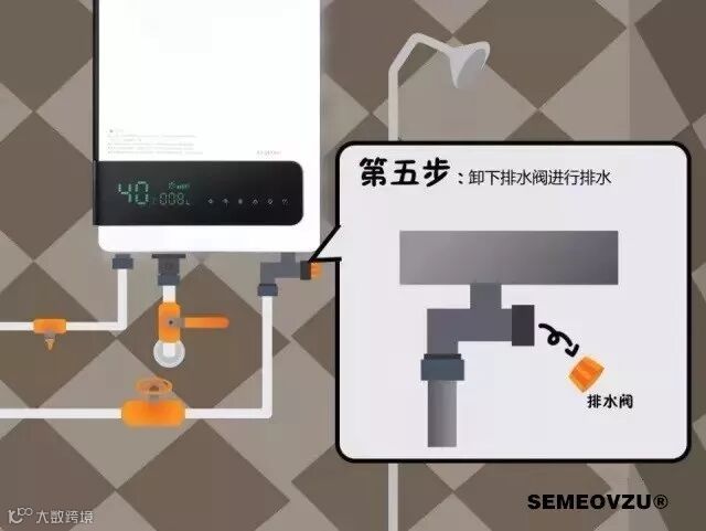 ★当室外气温低于0℃时,使用完热水器后,请关闭进水阀,然后拧开排水阀,将热水器内的水放完,再装上排水阀,以免水结冰膨胀而损坏热水器。(故热水器安装的高度应方便操作)