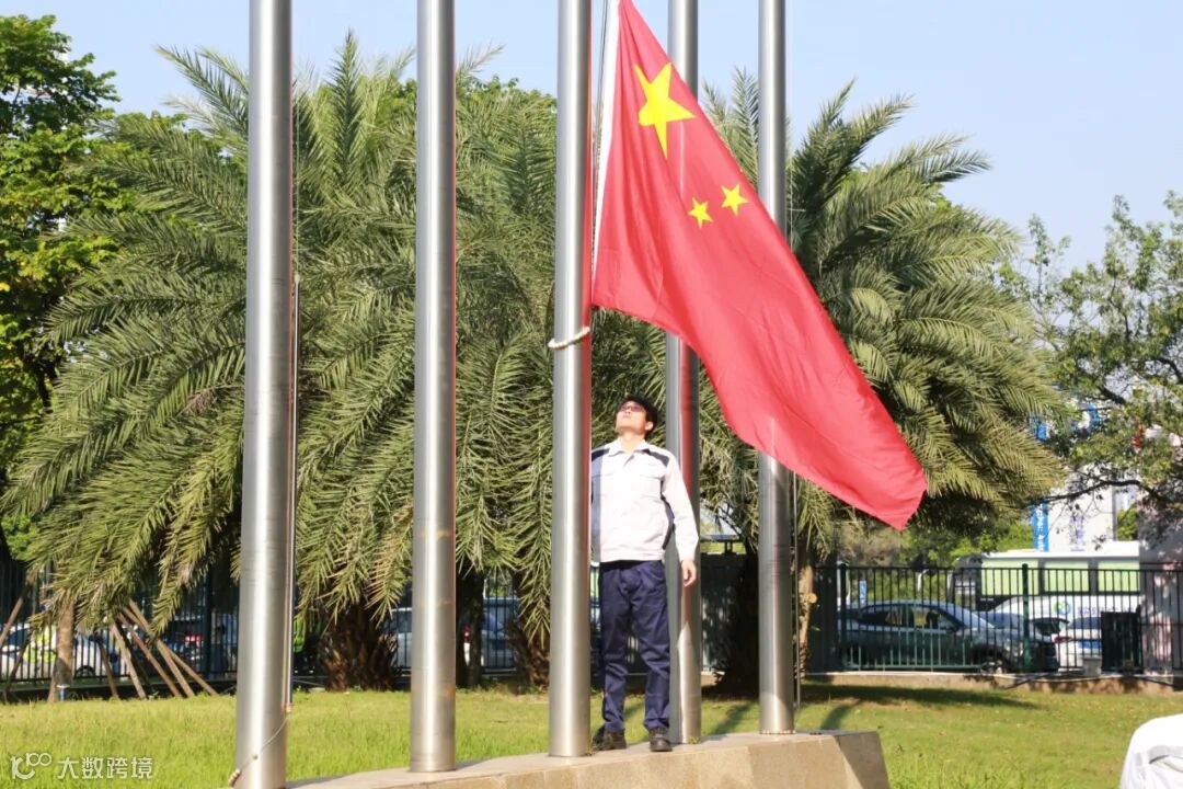 随着雄壮的国歌响起,鲜艳的五星红旗冉冉升起,全体员工列队整齐,面向国旗行注目礼,对祖国致以崇高敬意,祝愿伟大的祖国更加繁荣富强。
