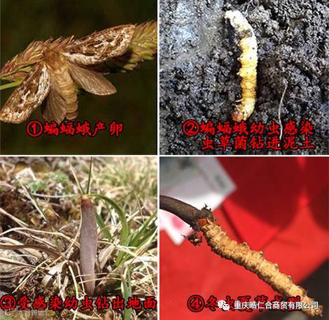 冬虫夏草的形成,通俗的说就是虫草蝙蝠蛾在土壤中产卵,孵化为幼虫之后,冬虫夏草菌种侵入幼虫体内,吸收幼虫体内的营养,并在幼虫体内不断繁殖,致使幼虫体内充满菌丝,在来年的5-7月,从幼虫头部长出黄或浅褐色的菌座,生长后冒出地面呈草梗状,就形成我们平时见到的冬虫夏草。