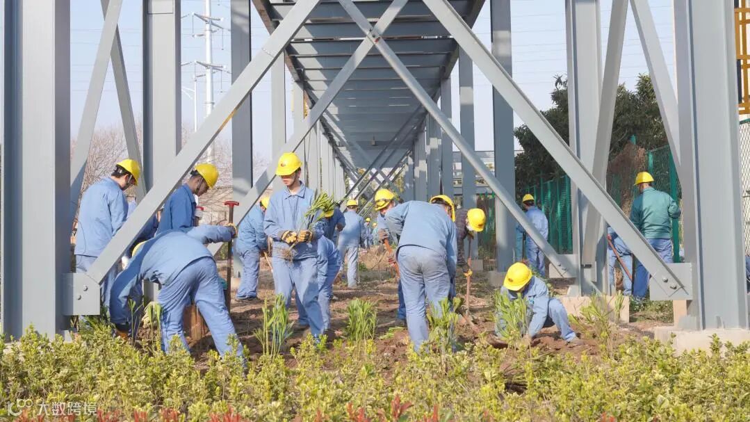 挥锹铲土、扶苗填坑、提水浇灌……大家分工协作,配合默契。一株株新栽的树苗在春风中傲然挺立,孕育着无限生机。从第一次挥锹到如今满目新绿,义务植树已成为华昌化工党团员们的“春日之约”。一次次俯身培土,一次次浇灌希望,不仅让厂区的绿色版图不断扩大,也让“花园式工厂”的愿景一步步照进现实。
