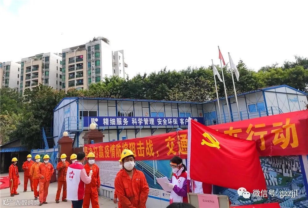 洛溪大桥拓宽工程临时党支部积极开展工程一线疫情防控复工生产“党员先锋岗”活动。发动党员、团员和工会会员以敢于担当的实际行动书写初心,以防控疫情的有力作为践行使命,在施工一线现场开展人员体温检测及登记、检测口罩佩戴与作业人员防护、防范新型冠状病毒肺炎知识宣传等活动。把党旗高高飘扬在疫情防控的第一线,构筑起了众志成城防控疫情的强大防线。充分依托党支部的战斗堡垒作用和党员的先锋模范作用,以不破楼兰终不还的决心和勇气,坚决打赢疫情防控阻击战。
