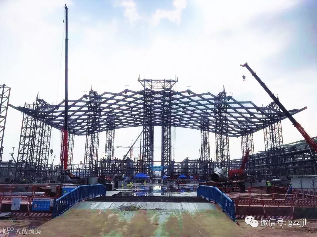 “我宣布:深圳国际会展中心(一期)施工总承包项目南登录大厅A5网壳提升现在开始。”随着深圳会展招华会展总经理李年长、珠江监理项目总监温育希、施工总承包项目总经理史如明等人共同触摸启动球,总体投影尺寸92.5米×126米,重达1350吨的深圳会展南登录大厅A5钢结构东段网壳在多达26个提升器的提升下徐徐上升,这标志着深圳国际会展中心钢结构施工又迈入了一个新的阶段。