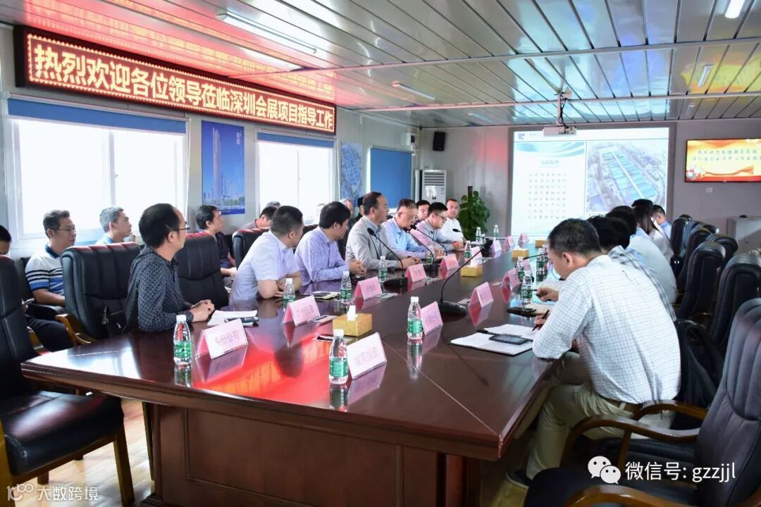 项目总监温育希对项目的整体建设、安全生产工作情况进行介绍,充分展示了项目“一流设计、一流建造、一流经营”的立项标准。珠江实业集团廖晓明副总经理对项目管理工作及成效予以了肯定,赞扬了珠江人勤劳肯干、勇于担当、积极奉献的工作作风和精神,要求项目监理中心继续发扬珠江人的优良作风,实现一流建造目标,树立珠江监理品牌,打造标杆项目。随后众人登上瞭望塔,俯瞰深圳国际会展中心项目全貌及周边配套设施,现场建设如火如荼,场面震撼人心,充分展现了珠江监理的管控能力。